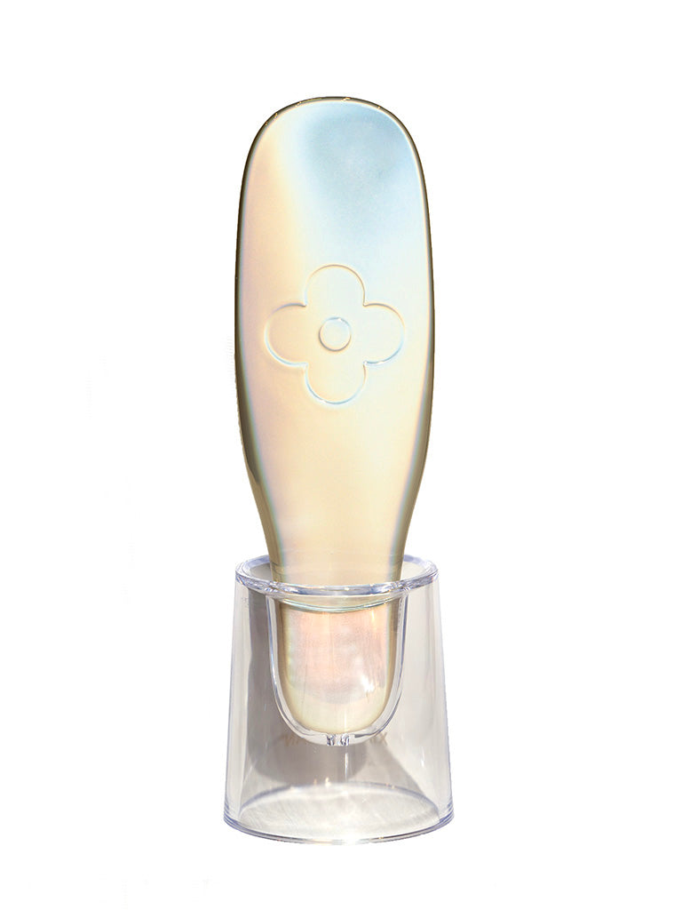 Розмір FAIRY BRUSH дозволяє її зберігати навіть у маленьких сумочках. Підставка для гребінця це чудова ідея, бо гребінець буде завжди мати своє місце. FAIRY BRUSH має нейтральний перлинний колір, а ніжна квітка конюшини має покорити кожне жіноче серце.